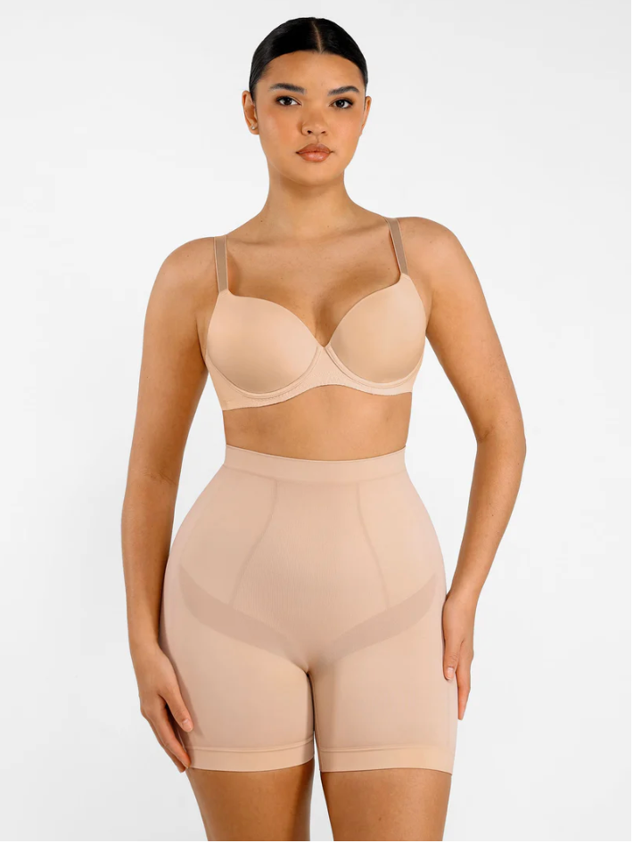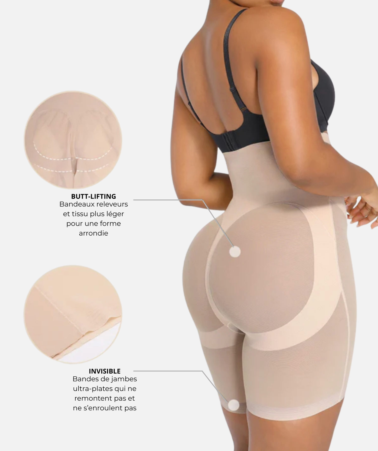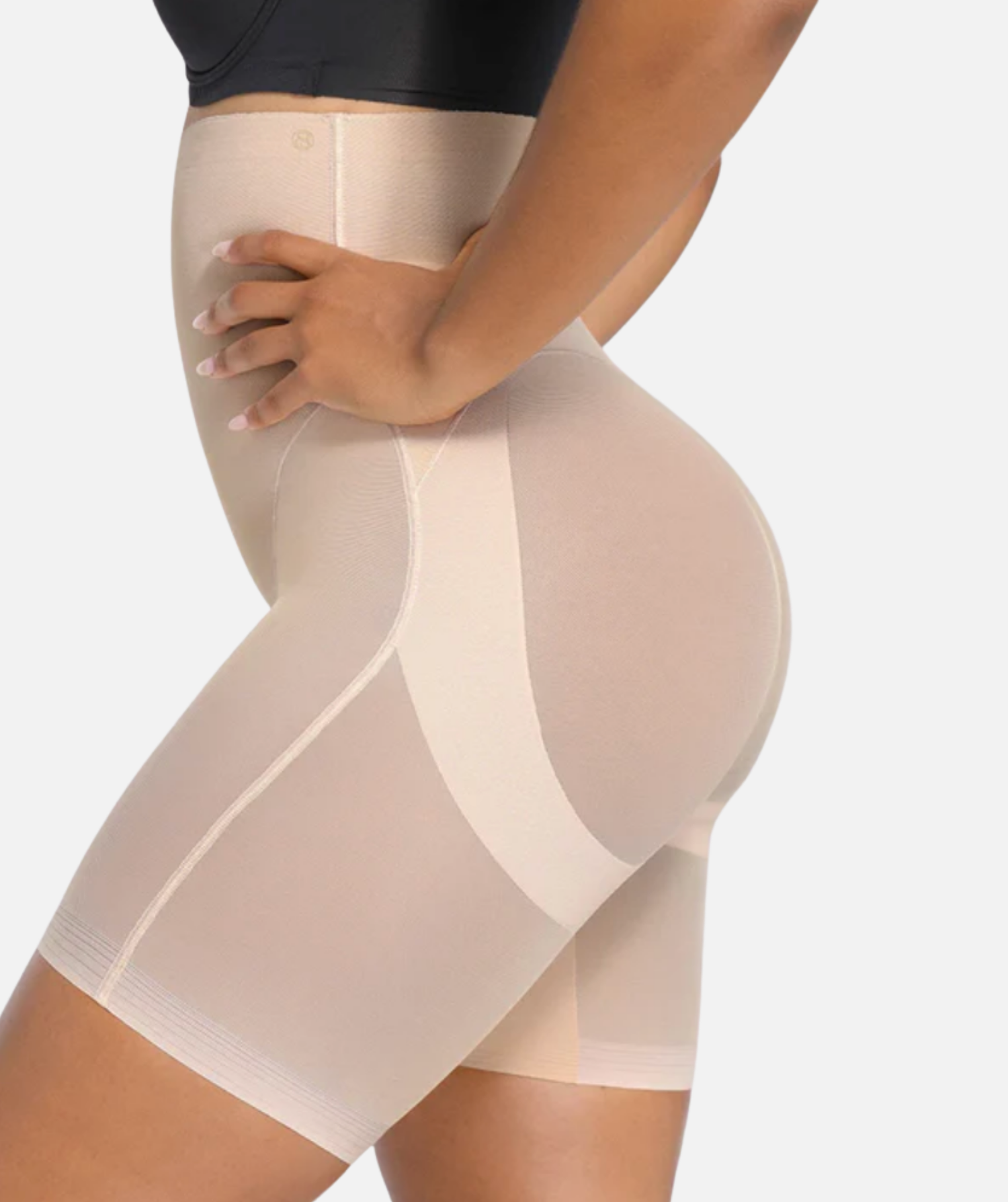 Notre short gainant lisse instantanément la zone abdominale, affine les courbes et fait disparaître les marques sous les vêtements.